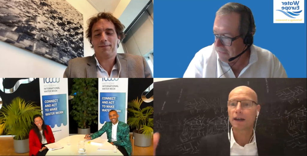 On the programme we invited guest speakers, both live and online, to share stories and insights from their perspective. For instance, stories on wastewater monitoring as an early warning system for pandemics and the mobilization for youth engagement in water. We also had the pleasure of welcoming representatives behind three of the Amsterdam Agreements. RESILIO with their blue-green rooftops, Pamela Elardo and Denis Penouel for the Utility Agreement and Li An Phoa with her new agreement, Mayors for Drinkable Rivers. It was inspiring to hear what they have accomplished and how we can contribute for meaningful change. In conclusion, we lively discussed the themes for AIWW 2021 and five panellists shared their key takes from these conversations.